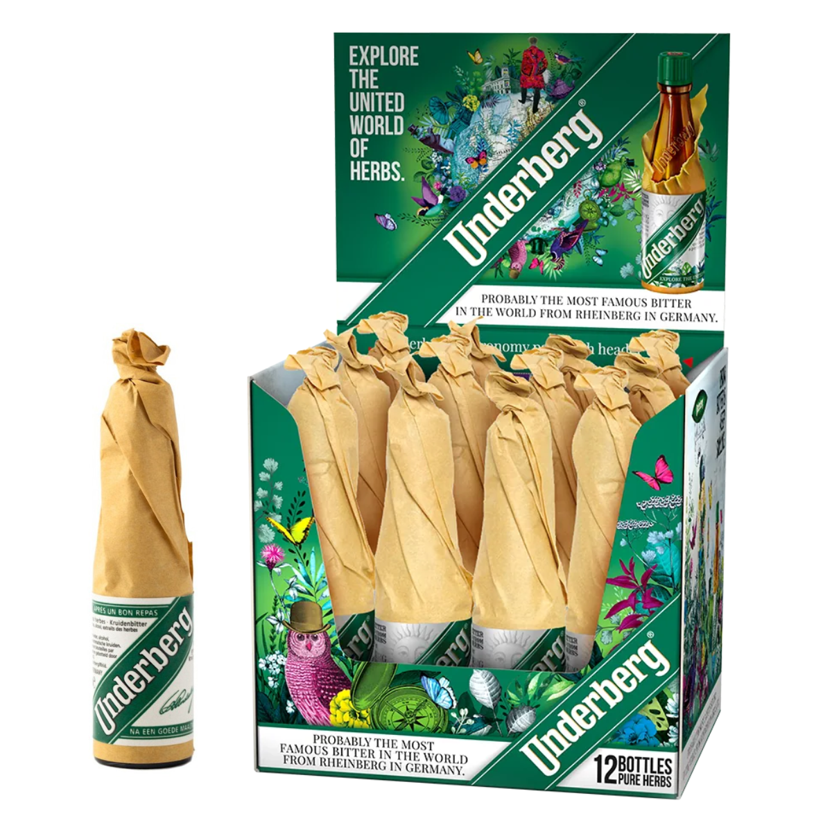 Underberg es un digestivo amargo elaborado en Alemania desde 1846 con una mezcla secreta de hierbas naturales de alta calidad. Su sabor único y propiedades digestivas lo hacen popular entre los conocedores. Se presenta en botellas individuales de 20 ml, cada una envuelta en un papel característico. Underberg es reconocido a nivel mundial como un producto premium en el mercado de licores digestivos, valorado por su tradición y calidad. Para experimentar con amigos, al aire libre o despues de una buena comida. Mezclado con alcohol premium de calidad y agua. Producto puro, libre de OGM, sin gluten, kosher y vegano.